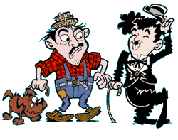 Olha só a trama do filme Jeca e o Bode que Fala: um caipira que foi trabalhar na cidade grande, e se atrapalha todo com as coisas modernas, como os elevadores e as escadas rolantes. Mas ele acaba conquistando a simpatia das pessoas, porque tem um bode que fala! O caipira se chamava Mazzaropi. Criado pelo ator Amácio Mazzaropi, era um personagem que figurou em mais de 30 filmes, do começo da década de 60 até a de 80. Isso o faz lembrar do Carlitos? Sim, o Carlitos era o personagem atrapalhado e simpático que o ator inglês Charles Chaplin interpretou em quase todos os seus filmes, na época do cinema mudo. Mazzaropi sempre aparecia nos filmes com o jeito típico do homem simples do interior do estado de São Paulo, na época_ também conhecido como "caipira": camisa xadrez, calça que acabava antes das canelas (a famosa "pula-brejo"), chapéu de palha. E puxando o "r", como não poderia deixar de ser.