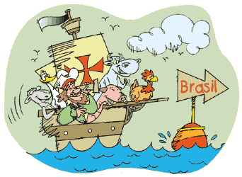 Não foram só os índios que contribuíram para a cozinha dos portugueses, não. Foi uma verdadeira troca de receitas. Os portugueses trouxeram para cá um tempero muito importante: o sal, que era muito pouco consumido pelos índios. Os "cara-pálidas" ensinaram os índios a temperar a carne com sal para conservá-la, assim ela poderia ser armazenada e consumida mais tarde. Outros temperos também fizeram a cabeça, ou melhor, o paladar dos "peles-vermelhas": a canela, o alecrim, a erva-doce e o cravo-da-índia. Se bem que, no primeiro contato com a frota de Cabral, os índios odiaram a comida européia e até cuspiram o que foi oferecido! Vários tipos de carne, que não tínhamos aqui, também vieram com os navegadores: gado bovino, patos, porcos, carneiros, gansos e... o outro item do nosso "cardápio cultural": a galinha. Os índios não gostaram muito da galinha logo de cara. Eles as criavam, mas só para vender os bichos e os ovos aos engenhos. Nas tantas idas