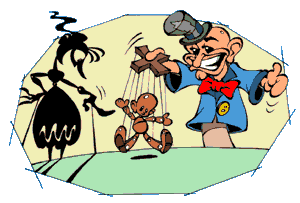 Europa: ali aparecem principalmente as marionetes, que são bonecos controlados por cordinhas presas nos seus braços, pernas e cabeça. Também há fantoches, que são construídos em cima de luvas e controlados pela mão.