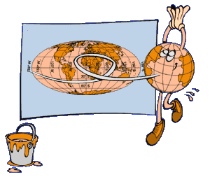 Se você tem um atlas atual, provavelmente o mapa-múndi segue a Projeção de Mollweide. Dê uma olhada!