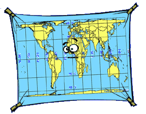 Sobre a folha são projetadas as coordenadas dos outros pontos do globo.Na parte central, aquela onde a folha "toca" o globo, não há distorção. O mesmo não acontece para os outros pontos, que aparecem distorcidos, "menores" em relação à parte central.