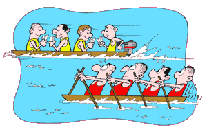 Vamos remar por 2 quilômetros? Para os atletas do remo, a meta é fazer o barco "voar" até a linha de chegada, durante 2 mil metros. Nos últimos 500 metros, então, o ritmo aumenta ainda mais: é como aquela arrancada final da maratona. Há vários tipos de provas, desde as em que o atleta rema sozinho às com times de oito. Em algumas, há divisões por peso dos atletas. Homens competem em oito categorias, e mulheres em seis. Nas individuais, os atletas contam com dois remos. Em todas as outras, com um único. Os Lagos Penrith sediaram as disputas, em Sydney. Outra atração no remo foi a participação do veterano inglês Steve Redgrave, que ganhou medalhas nos últimos quatro Jogos Olímpicos. Anderson Nocetti foi o único representante brasileiro no Remo. Pode: Em algumas provas, levar um timoneiro, responsável por não deixar a equipe perder o ritmo: "Reme! Reme!". Não pode: Parar no meio da corrida e dar um mergulho, para refrescar-se do calor australiano. |