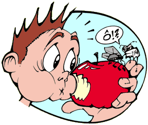 Adivinhe de quem estamos falando? Da mosca. Não, não é do filme. É daquela criatura voadora e asquerosa que se desenvolve no lixo e nos restos de comida. Ela carrega vários germes, que grudam nas suas patas e se espalham por todos os lugares onde ela pousa. Você sabe como elas comem? Então, prepare seu estômago: elas despejam saliva e vomitam uma parte do que já tinham comido antes em cima dos alimentos para poder dissolvê-los. Aí, mandam tudo para dentro. Como elas não têm a menor noção de higiene, continuam com a caca: fazem cocô em cima do próprio alimento que estão comendo. Aaaaarrrggghhhh!!! Ficou com enjôo? Imagine então as doenças que as moscas podem causar, já que pousam em tudo e comem todo tipo de porcaria. Fique esperto da próxima vez que pegar aquela linda, vermelha e suculenta maçã sem lavar e der uma mordida... |