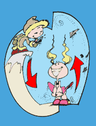 ENERGIA "AÉREA" Já aconteceu de você estar na rua justamente no momento em que bate aquela ventania? O vento é tão forte que parece que a gente vai voar junto com ele. Nessas horas, percebemos como o vento é poderoso. Ele tem a força! Ventos são grandes deslocamentos de ar. É o ar em constante movimento. E a gente está tão acostumado a "pegar um ventinho" que às vezes se esquece de fazer a pergunta mais óbvia e também a mais intrigante: mas por que o vento... venta? O ar se mexe por causa das diferenças de temperatura e pressão. O ar quente sobe e o frio desce. Em lugares baixos acontece o seguinte: a pressão do ar contra o chão é maior e faz o ar escapulir e viajar em direção ao alto. O ar procura então as zonas de menor pressão. É como se o ar estivesse sempre nervoso, tentando se aconchegar, procurando um ponto de equilíbrio. Como os ventos não ficam mesmo quietos, o negócio é aproveitar toda essa movimentação! A velocidade e a força do ar podem ser usadas para gerar energia elétrica! Quer ver? |