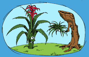 Um abacaxi todo colorido! Assim é a bromélia, uma "planta hospedeira" típica da Mata Atlântica brasileira, um dos ecossistemas mais ricos do mundo. Ela é chamada assim porque nasce nos galhos das árvores. Em apenas uma árvore é possível encontrar 500 bromélias! E, como precisam da floresta para viver, correm o risco de desaparecer com o desmatamento da Mata Atlântica! As bromélias dão flores uma vez por ano e desabrocham no inverno. Suas pétalas estruturam-se como se fossem a parte espinhenta do abacaxi, em lâminas que se sobrepõem. São flores lindas e de aspecto selvagem, com cores como azul, vermelho, roxo, amarelo, alaranjado. Imagine só que bonito! Elas sobrevivem em ambientes com pouca luz, como o interior da Mata Atlântica, que é uma floresta bem fechada. As bromélias acumulam muita água entre suas pétalas, e essa água parada serve de casa para um monte de bichinhos, como insetos, aranhas, larvas e protozoários microscópicos. Por isso as bromélias são importantes para o equilíbrio ecológico da floresta. Muito resistentes, as bromélias são utilizadas também para decorar casas , porque se dão bem em ambientes fechados. Elas duram de dois a três meses. Mas é preciso ter cuidado se tivermos uma bromélia em casa, pois insetos transmissores de doenças como a malária podem se acomodar entre as flores. |