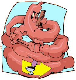 da comida. Depois, empurra para o reto, no finalzinho do sistema