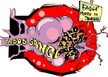 Quando o vírus da dengue entra em nosso sangue, ele funde sua membrana com a das células dos tecidos que envolvem os nossos vasos sanguíneos. Quando ele começa a se multiplicar, acontece uma inflamação nesses vasos, o que faz o sangue circular mais lentamente, causando pressão baixa. Isso também prejudica a oxigenação dos órgãos. E a dengue é mesmo danada: além de atacar o nosso sistema circulatório, também provoca uma inflamação no fígado.