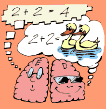 | O cérebro humano é dividido em duas metades, o lado esquerdo e o lado direito... O Esquerdo pensa: "2+2 = 4" O Direito pensa: "2+2 = Dois patos na lagoa" | O lado esquerdo é responsável pelo pensamento lógico, e o lado direito, pela criatividade. O Esquerdo pensa: "A chuva é a água evaporada dos mares e rios, que se condensa nas nuvens e cai na terra." O Direito pensa: "Mãe, as nuvens estão espirrando!" |