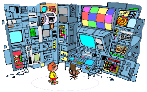 Você resolve ligar seu computador para navegar no Canal Kids. Para isso, vai até um quarto enorme, maior do que um apartamento de dois quartos. Nesse lugar, as paredes são cobertas por máquinas, como se fossem armários. Nelas, há centenas de botões, fios pendurados e dezenas de luzes que não param de piscar. Para apertar o botão de ligar, você começa a suar frio, porque não sabe onde diabos ele está. Por isso, pede a ajuda de dois técnicos que monitoram o computador, dia e noite, dentro dessa sala. Se o seu micro fosse