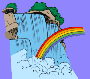 bate na água, um imenso arco-íris nasce na entrada da
