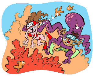 Os oceanos são a grande porção de água do planeta e ocupam 71% da superfície da Terra. É outro mundo, onde peixes, baleias, tubarões, golfinhos, algas e corais vivem, respiram e se reproduzem. Os corais não parecem mas também são animais. São uma espécie de pedra viva, cheia de fiapos que vão crescendo e se espalhando embaixo d'água. Eles nascem nos mares de água morna do planeta, principalmente na linha do Equador.