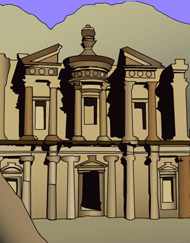 Durante muito tempo, uma cidade encravada no deserto da Jordânia era considerada lenda. Mas hoje sabemos que ela realmente existiu. Por volta de 312 a.C. (antes de Cristo), os Nabateus escolheram Petra como sua capital. Eram cerca de 10 mil beduínos que viviam do transporte de especiarias, incenso, mirra e plantas aromáticas. Estabelecendo-se em Petra, este povo criou templos, mosteiros, termas e tumbas talhados em rocha! Isto mesmo! Os Nabateus esculpiram rochas e criaram uma linda cidade!
